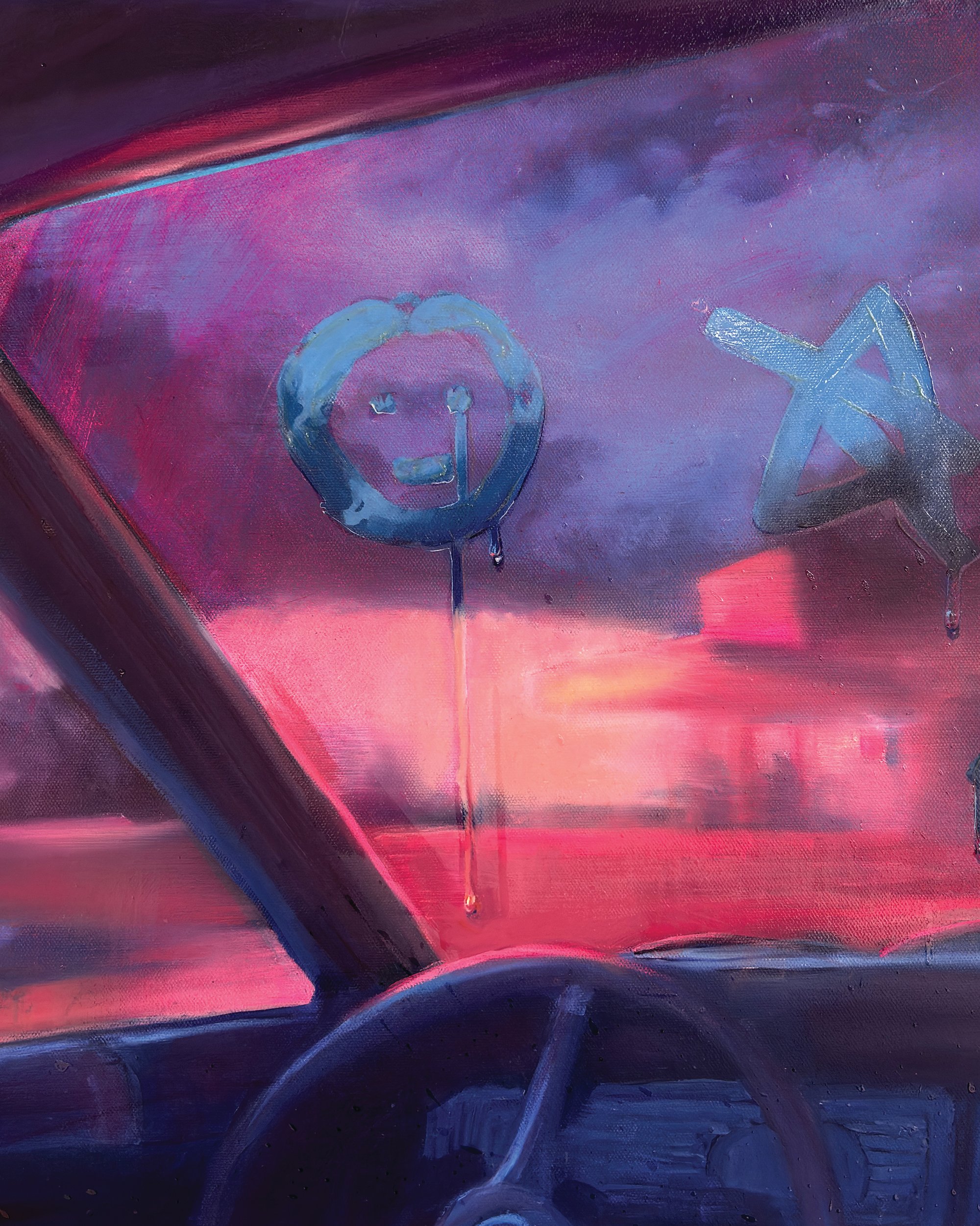 Playful and moody, Drive Thru Doodles captures the fleeting joy of tracing smiley faces and shapes into a fogged-up car window. Against the neon glow of a late-night drive-thru, the simple doodles become little acts of rebellion and memory, reminders that even in mundane places, creativity finds a way. Printed on semi-gloss cardstock with backing board, this 8×10 print is ready to frame and makes a vibrant addition to any collection.
